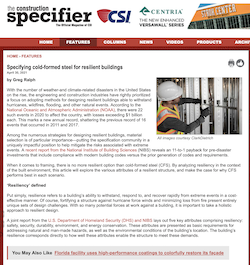 With the number of weather-and climate-related disasters in the United States on the rise, the engineering and construction industries have rightly prioritized a focus on adopting methods for designing resilient buildings able to withstand hurricanes, wildfires, flooding, and other natural events. As featured in the April 2021 article in The Construction Specifier, outlined by Greg Ralph, "Resilience refers to a building’s ability to withstand, respond to, and recover rapidly from extreme events in a cost-effective manner." Read the full article here.