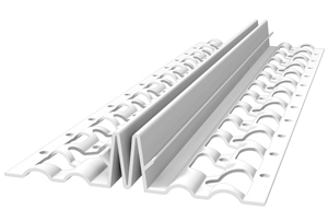 The ClarkDietrich E-Flange Control Joint complies with all associated ASTM and code standards for exterior vinyl materials per ASTM D1784 and ASTM C-1063, Table 1. The product also meets the requirements for full embedment of the assembly per ASTM C1861 & C1063, and assist in accomplishing the ASTM provision for tying the control joint to the lath through its rib sections in the flange area.