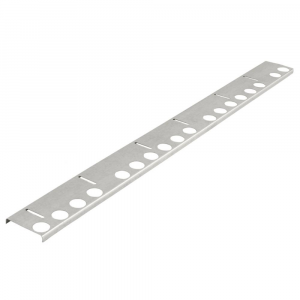 A punched metal strip attached to the front edge of the cabinet is used in some geographical areas as a screed and support for the countertop trim.