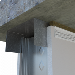 Profile with two slotted legs w/ firestop on both sides. Composite Firestop Deflection Track System for use in fire rated wall assemblies. Legs with slots spaced 1” o.c. for positive attachment to…