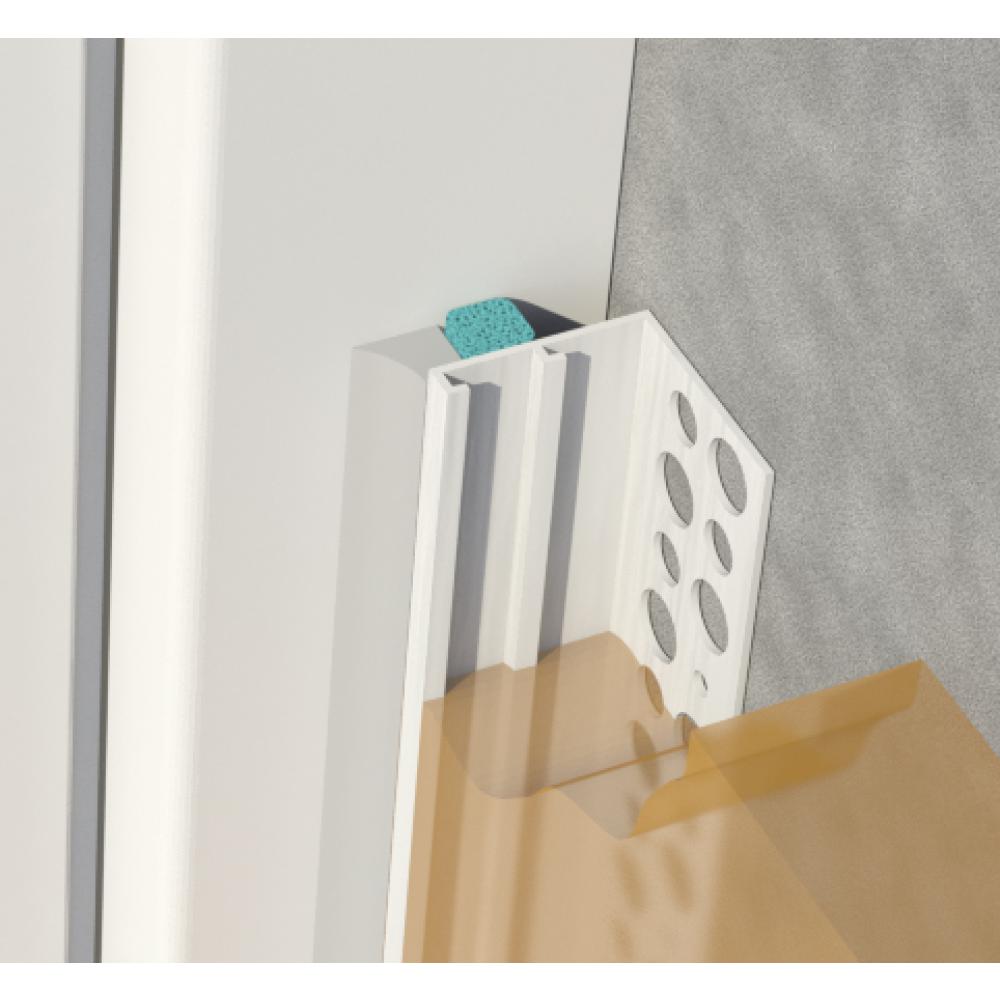 Easy to install in tight areas such as recessed doors and windows, providing added moisture protection and a clean finish. A labor saving and quality control product for use at exterior openings in wet wall stucco applications.