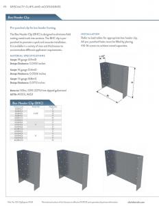 The Box Header Clip (BHC) is designed to eliminate field cutting metal track into sections. The BHC clip is pre-punched to promote a quick and accurate installation. It is available in a variety of sizes and thicknesses to accommodate different application requirements.