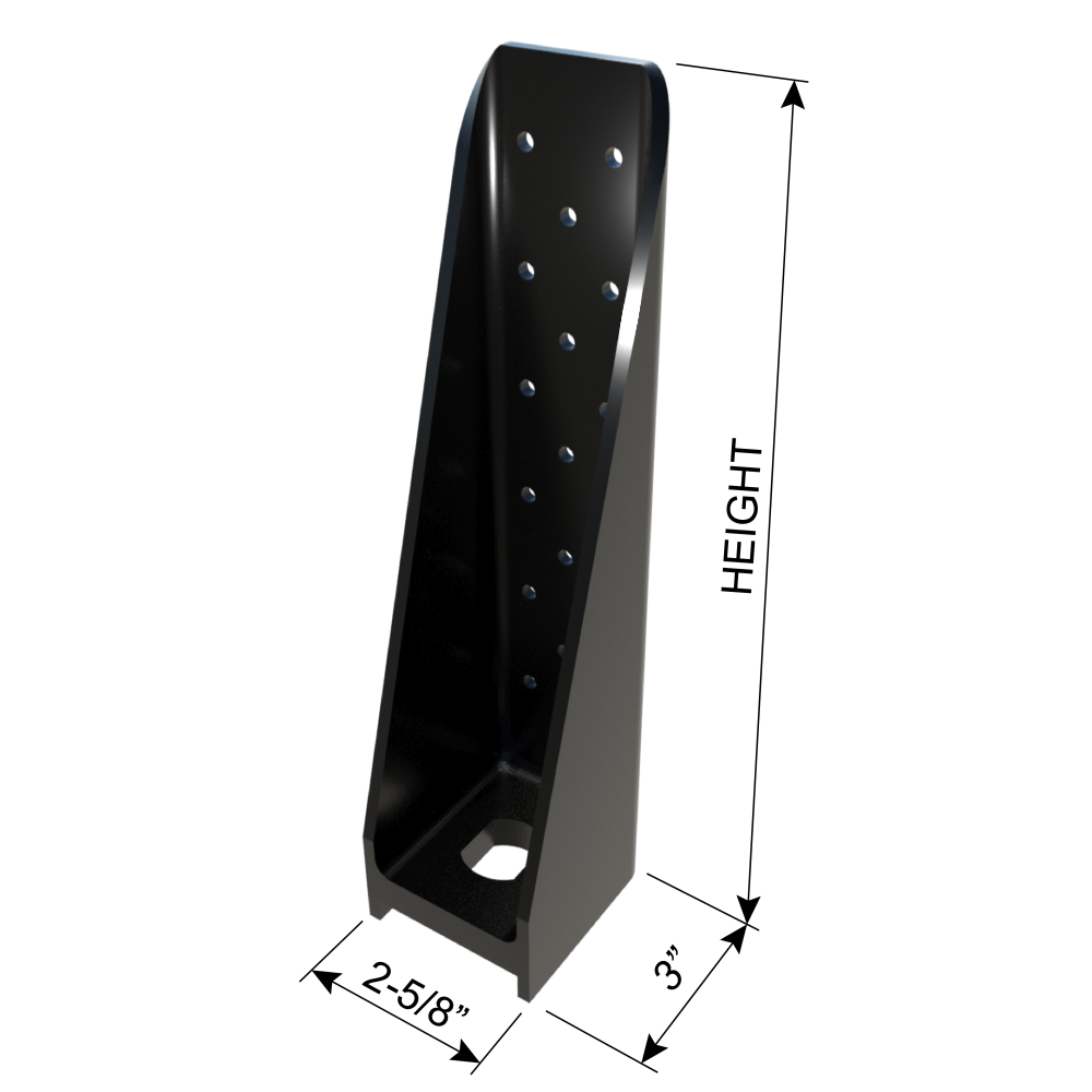 Two-piece welded construction comes in three sizes for optimal performance. Installation is made easy with prepunched bolt holes.