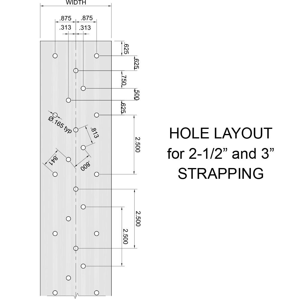 | Product Code | Thickness | Width | #10 Fasteners Per Each End of Strap |