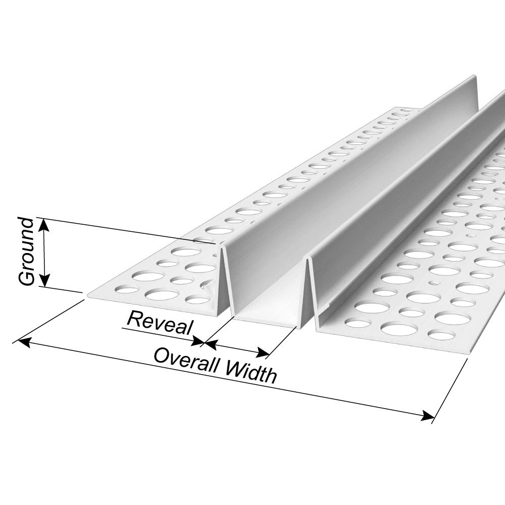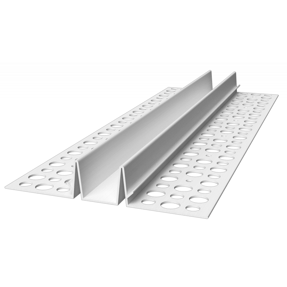 Designed to relieve stress and assist in controlling cracking in large areas of walls and ceilings, also creating 1/4" to 1-1/2" reveal in Stucco. Surface connector clips are provided for alignment and as a base for sealants.