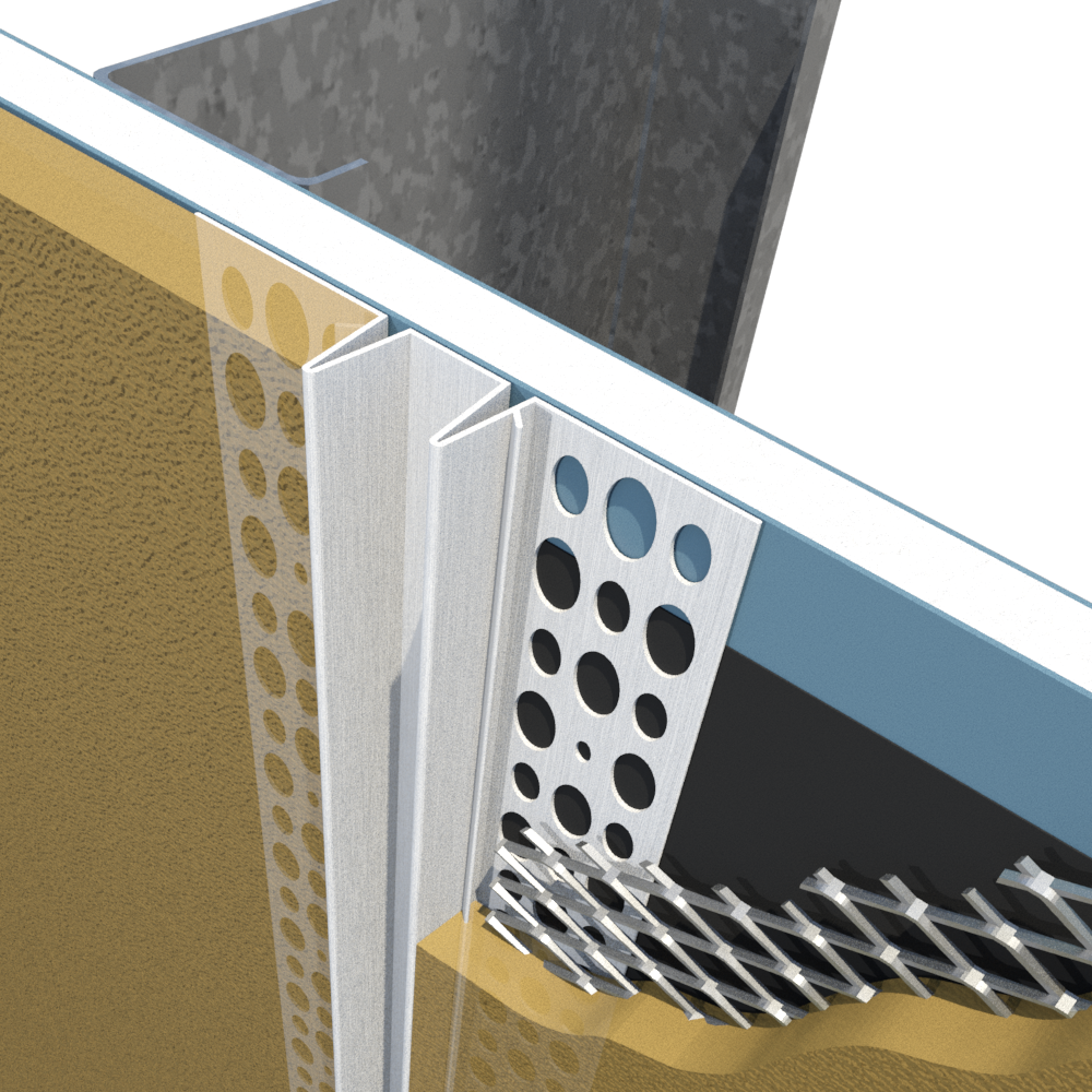 Control Joints help with the embedment of the lath and flange while assisting with tying requirements of discontinuous lath to the joint.