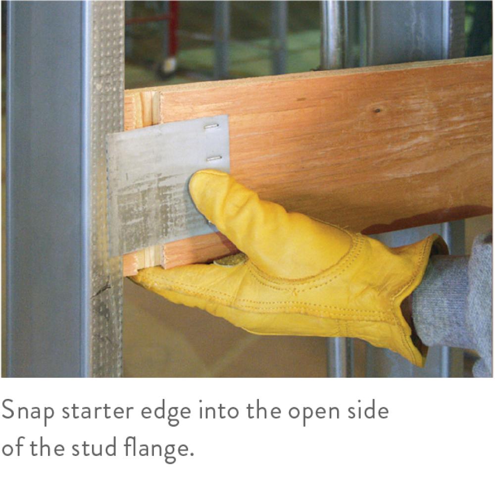 10. Anchor to the stud flange using (3) #8 wafer head/pan head screws.