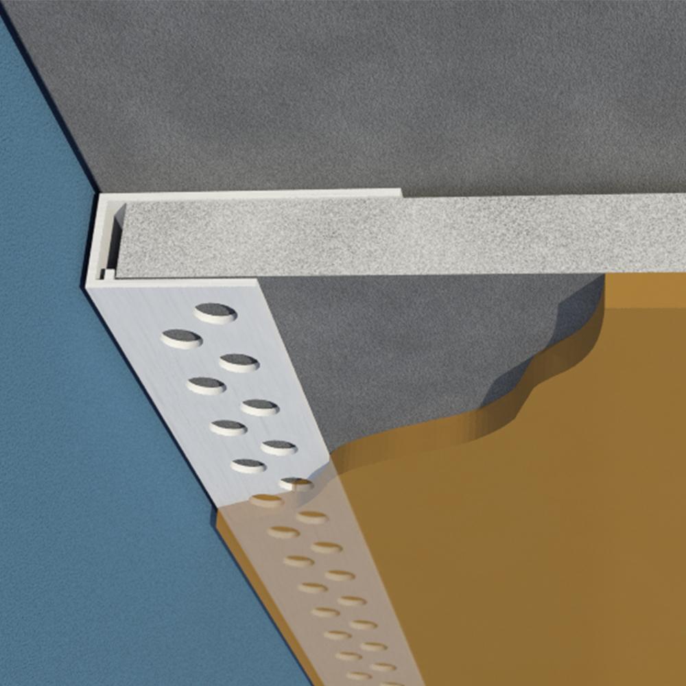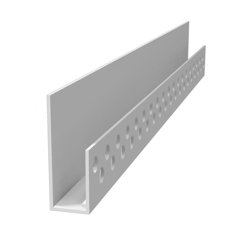 Standard DEFS base support starter strip or as a perimeter casing bead. Two rows of large perforations allow the base coat mixture to easily flow through and bond to the substrate.