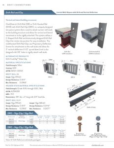 The system utilizes a C-Shaped Drift Headed Rail and distinctively designed Drift Rail Clips that rotate into position for easy installation. The Drift Headed Rail is a C-Shaped Drift Rail with nelson studs welded at 8" o.c. for a cast-in-place applications. For mechanically fastened applications refer to the DR-97 Drift Rail. The Drift Rail Clips use FastClip Deflection Screws for attachment to the wall studs and allows for 3" vertical deflection (1-1/2" up and down) and is also designed with 1/8" holes to rigidly attach wall studs.