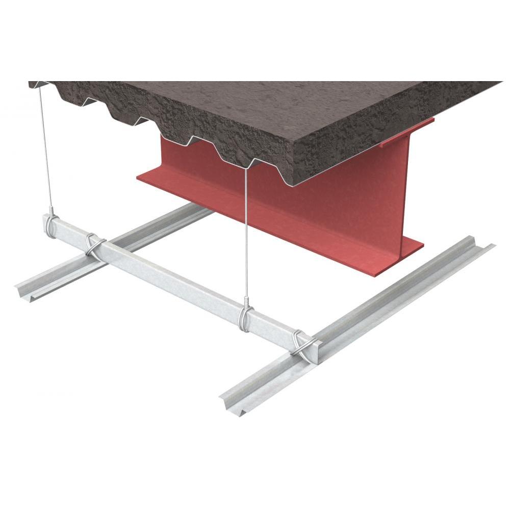 Furring channel can also be attached directly to the underside of bar joists. The furring is installed perpendicular to the joists and wire-tied at appropriate intervals. Wire ties are required for fire-rated and multilayer assemblies.