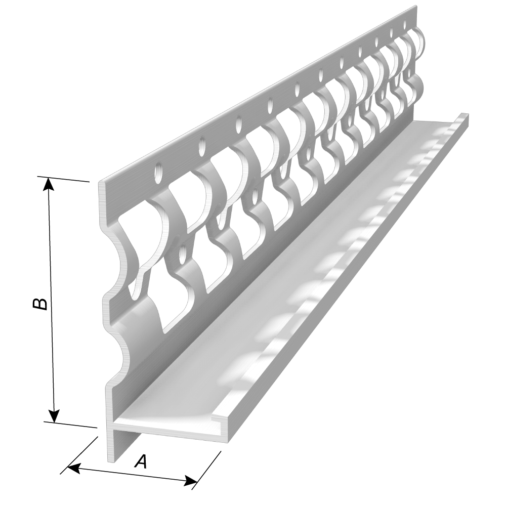 E-Flange allows for more stucco mix to flow through the flange, providing a more thorough and consistent embedment. The unique E-Flange shape also allows for quick and easy tying of lath and other accessories. Larger, triangular perforations allow more stucco mix to flow through and adhere to the substrate, improving embedment with and lath and trims.