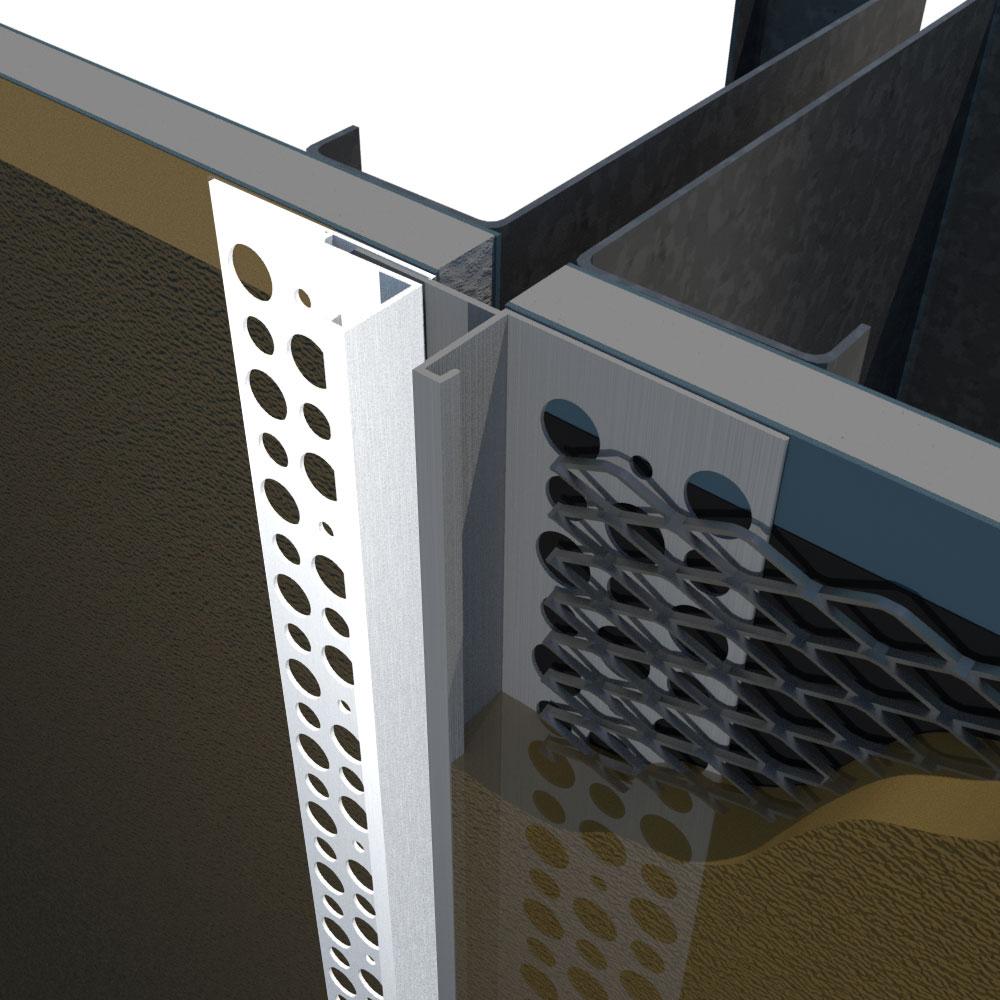 Female casing bead with an expansion slot, used as a component of expansion joints, vents, reveals, etc.