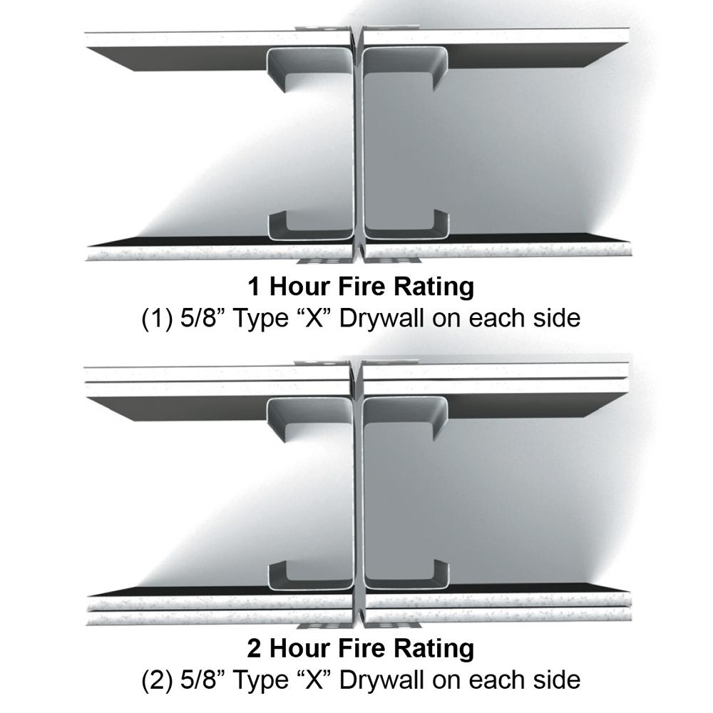 A composite control joint with intumescent tape factory applied to one side of the back of the control joint. The FAS-093X has been tested according to UL-2079 “Test For Fire Resistance of Building Joint Systems” and is used to relieve stresses of expansion and contraction of drywall interior partitions or ceilings running in a horizontal or vertical direction. The opening is protected by an orange plastic tape to indicate the fire rating this tape is removed after joint compound has been applied and the finish is completed. The section is fabricated from hot-dipped galvanized steel complying with ASTM A653 and ASTM A1003.