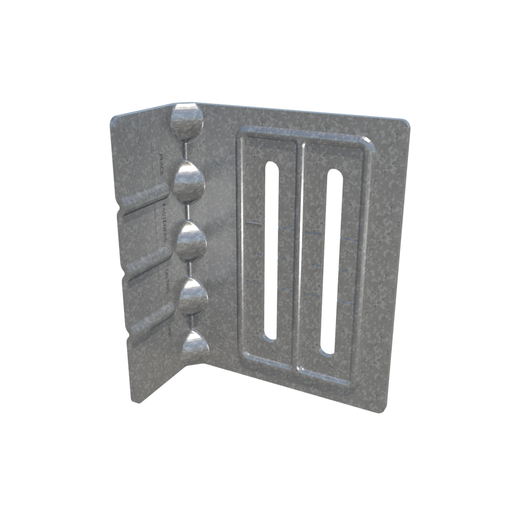 A FastClip deflection clip installs quickly with screws or powder-actuated fasteners, and provides adjustable standoff to ensure a plumb wall plane. Proprietary Deflection Screws are provided with each clip to ensure friction-free sliding. Each clip is also embossed with fastening patterns to ensure accurate placement of fasteners.