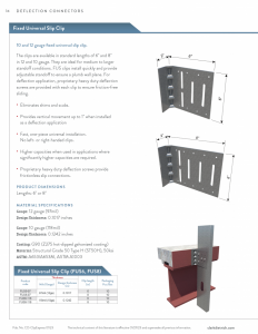 Proprietary HD Deflection Screws: Many of the ClarkDietrich deflection clips include our proprietary deflection fasteners that have been specifically designed to provide friction-free deflection. These fasteners eliminate drag, binding or resistance that can often occur with common fasteners. For the FUS clip, we supply a heavy duty version of the deflection screw. Clark Dietrich's proprietary HD deflection screws are utilized on the Fixed Universal Slip clip only when used for a deflection condition.