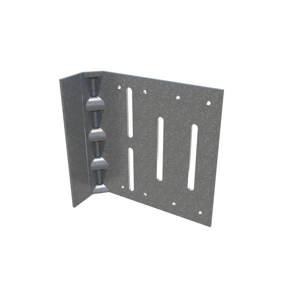 Connections to the building can be made with screws, welds powder-actuated fasteners (PAF). Mechanical fasteners shall be located on the embossed marks given on the scored line of the 2" flange. Attach building anchors to the structure according to the manufacturer’s instructions. Anchors shall be installed through the embossments on the scored line of the clip as shown on the attached drawings. In no case shall anchors be installed more than 3/4" from the bend on the short leg of the clip. In cases of discrepancy between this information and the Design Engineer’s details, the Design Engineer’s details shall be followed.