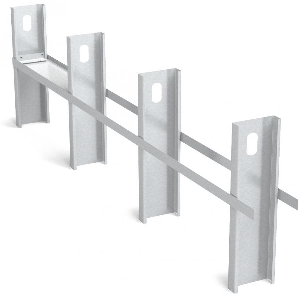 Lateral bracing consists of a field-cut stud or track for solid blocking and steel strap bracing on both flanges of the studs. Solid blocking is placed at each end of the wall, adjacent to wall openings and 8' O.C. maximum. The blocking is attached to each adjacent stud via EasyClip™ E- or S- Series™ clips, or when a track is used, the flanges are cut, the web bent and a minimum 4" overlap is used to secure the track block to the studs. Strap bracing, 2" wide and 20-gauge (33 mil) minimum, is fastened to each solid block and stud flange.