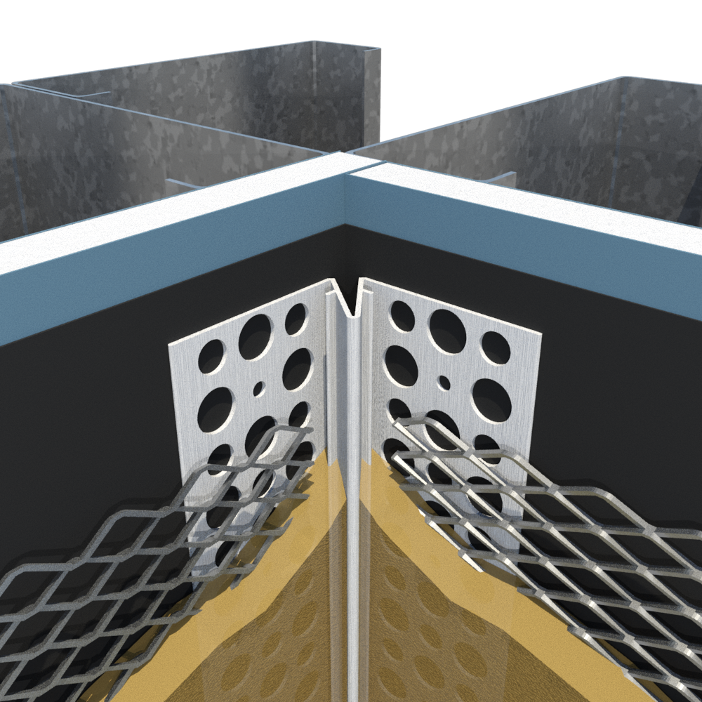 Control Joints help with the embedment of the lath and flange while assisting with tying requirements of discontinuous lath to the joint.