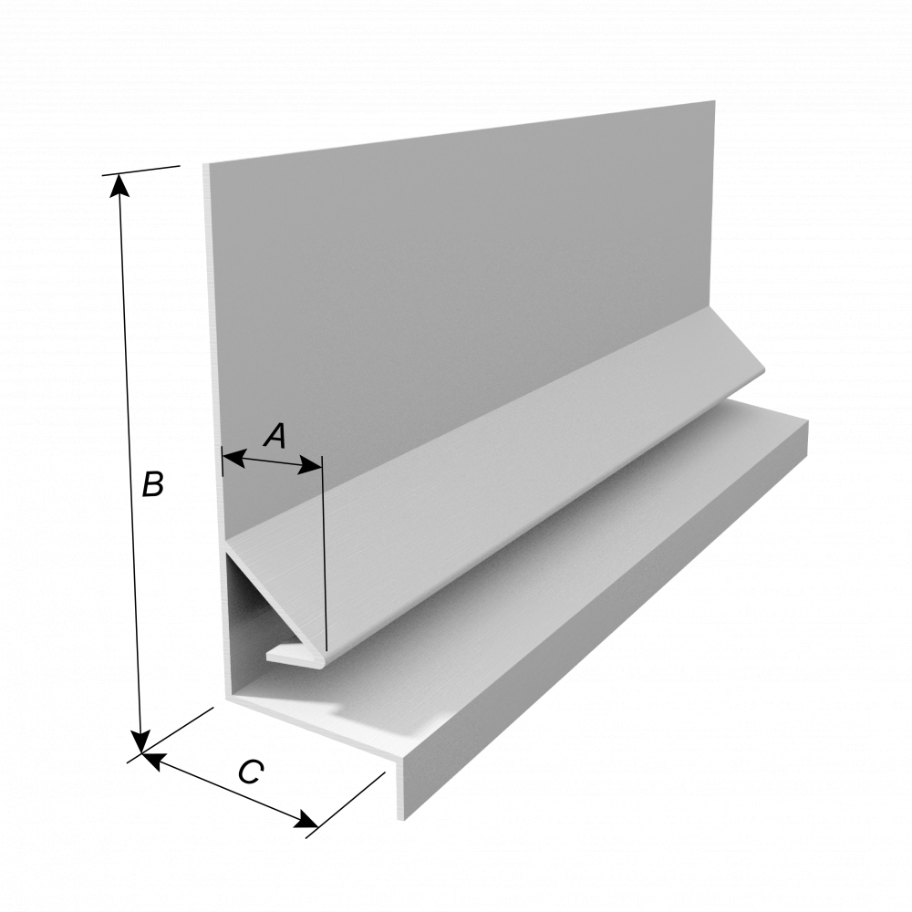 Designed to provide a flashing transition from stucco, siding, stone over a brick ledge, at a wall transition.