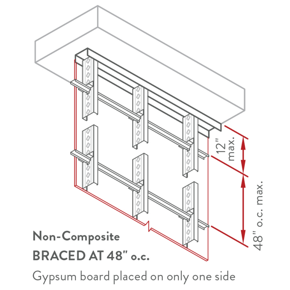 Wall framing with Deflection Track is typically non-composite design since the screws attaching the gypsum board are not directly attached to the top track.