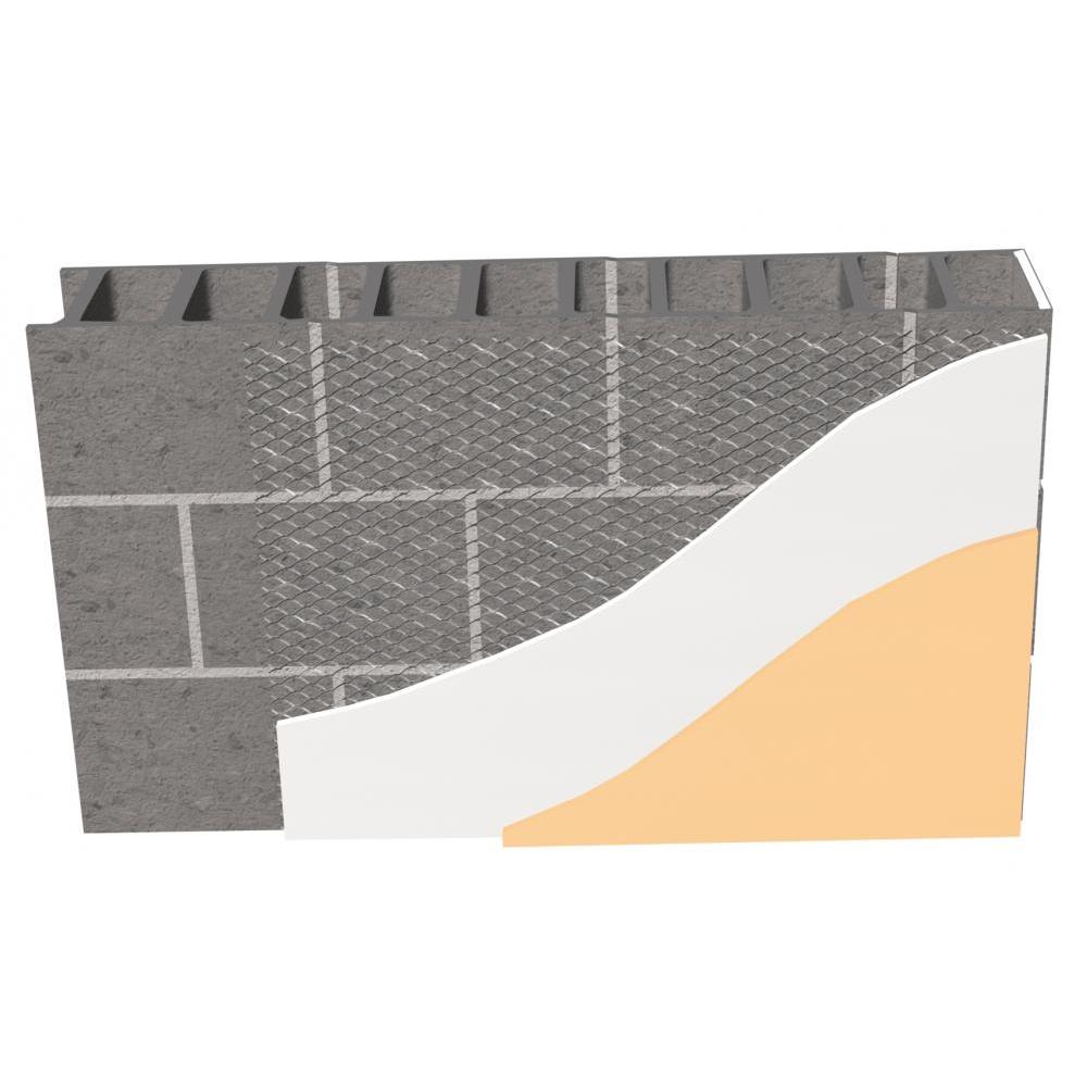 The dimple-patterned, self-furring plaster base is manufactured with evenly spaced indentations that hold the metal lath 1/4" away from the surface to be plastered. This results in an even and thorough embedment of the plaster.