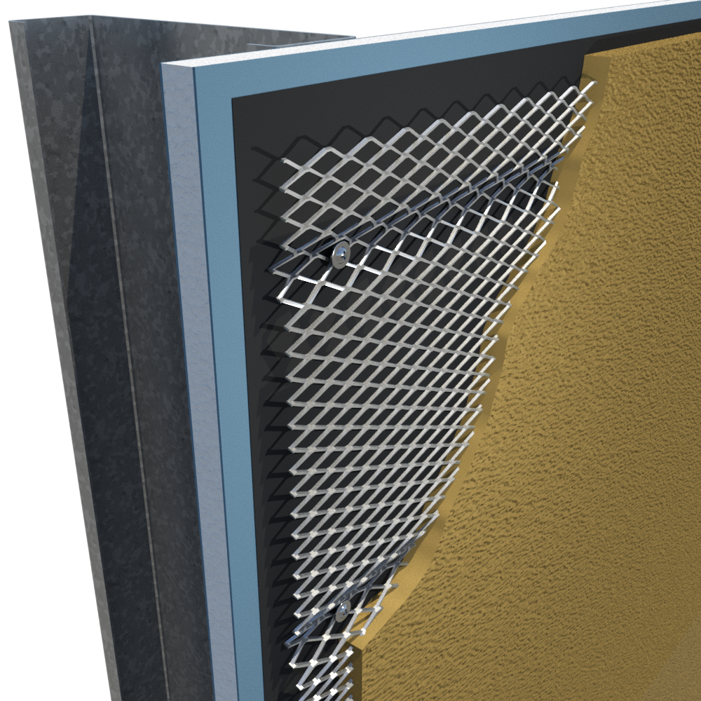 The V-groove provides an ideal point of attachment of the fastener to achieve ASTM C1063 compliance. V-grooved metal lath is available with or without a Grade-D asphalt paper-backing, weather resistant barrier.