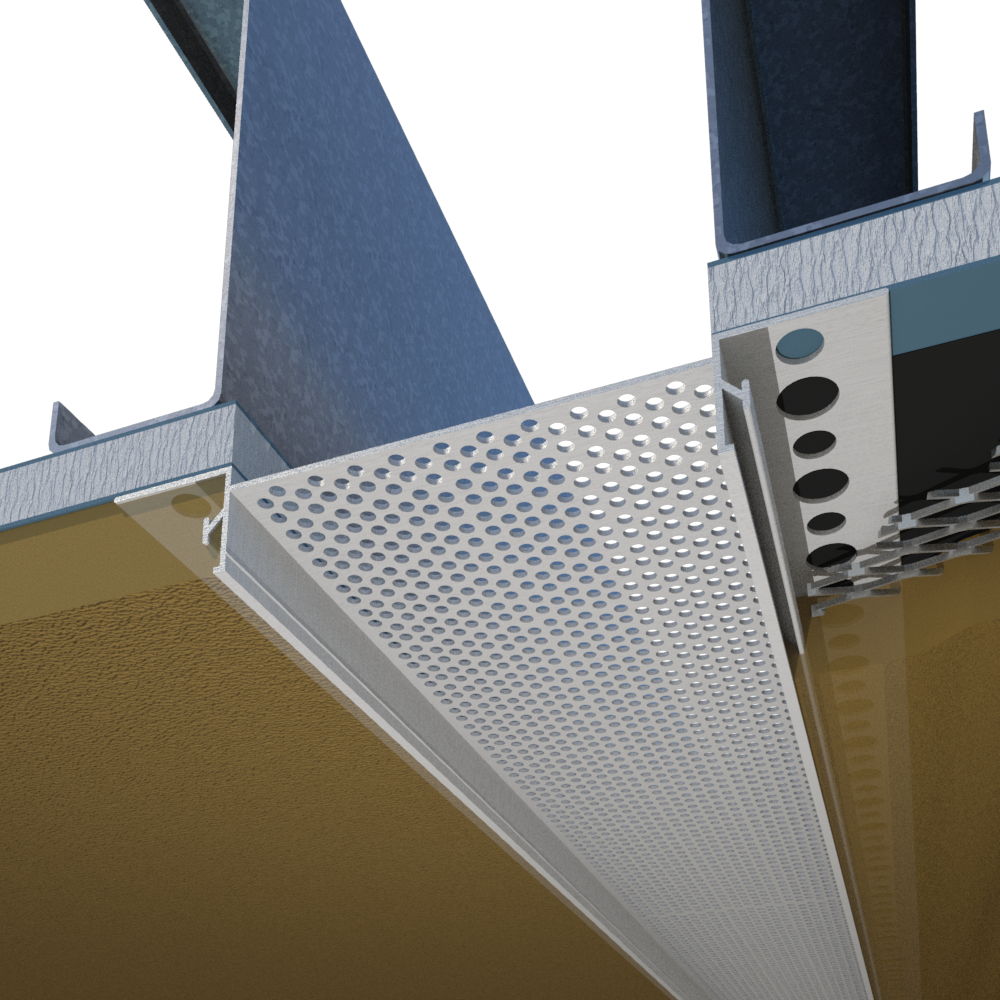 Reinforcing rib to key into stucco and plaster with a perforated flange.