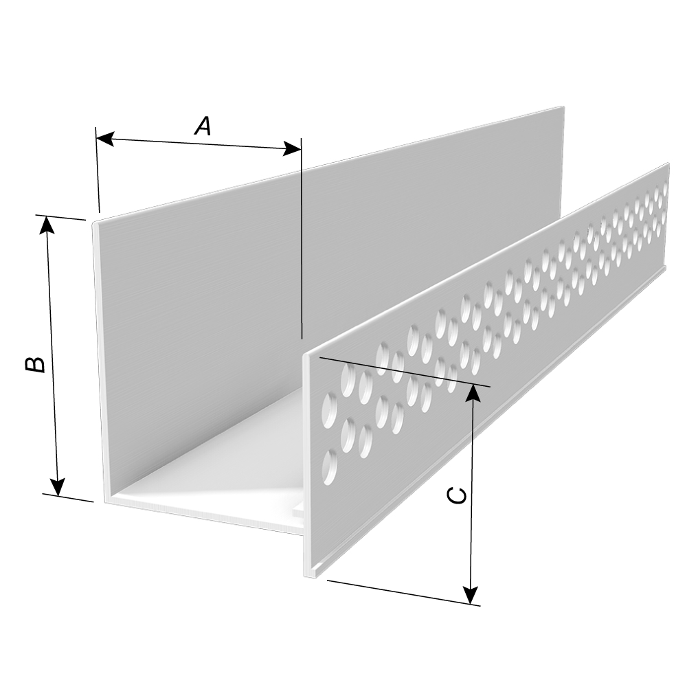 | Product code | Finish thickness | Insulation thickness (A) | Back flange (B) | Perforated flange (C) | Pcs./Box |