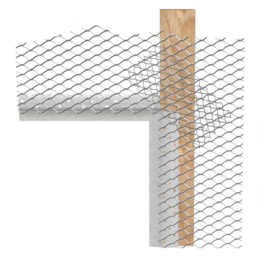 Commonly attached diagonally at the corners of doors, windows, or other areas prone to cracking. It may also be used to span pipe chases or to reinforce other stress points, such as the corners of openings in the stucco membrane within the lath system.  Striplath is an excellent mechanical break for painted steel when applying fireproofing.
