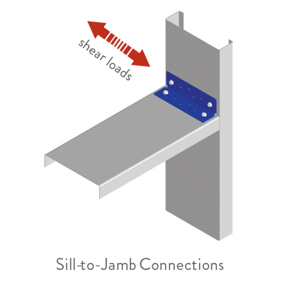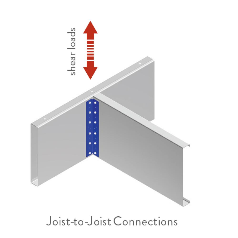 Pre-punched SwiftClips™ are used for multiple construction applications. They are commonly used for lateral bracing CRC connections, header & sill connections and floor joist hangers. The L-shaped clips fit between the stud flanges, so that shorter length clips do not need to be ordered.