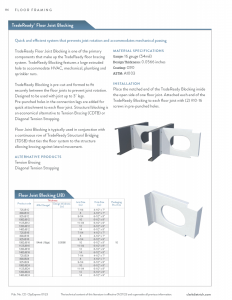 Floor Joist Blocking is typically used in conjunction with a continuous row of TradeReady Structural Bridging (TDSB) that ties the floor system to the structure allowing bracing against lateral movement.