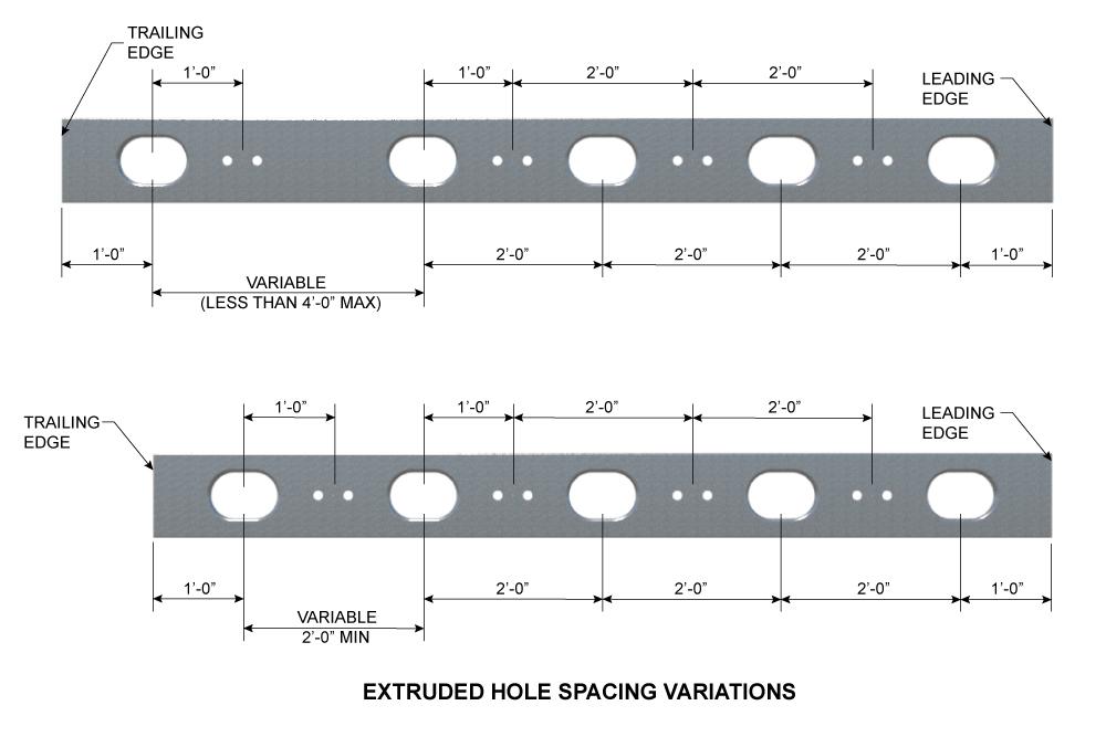 - 24" to center of each additional extruded hole - But not closer than 24"o.c to the last (Trailing edge) extruded hole