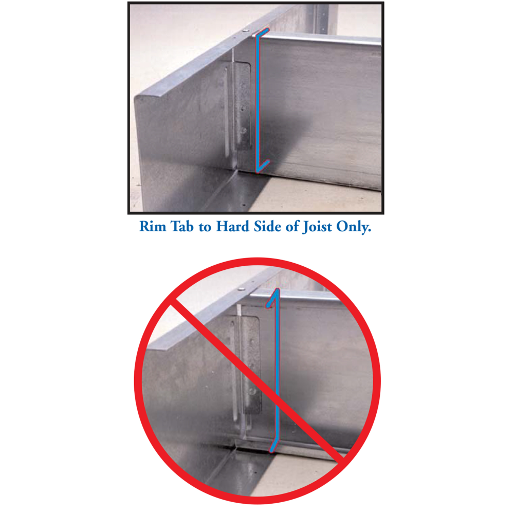 - Rotate hard side of joist to tab and screw attach through pre-punched tab holes.