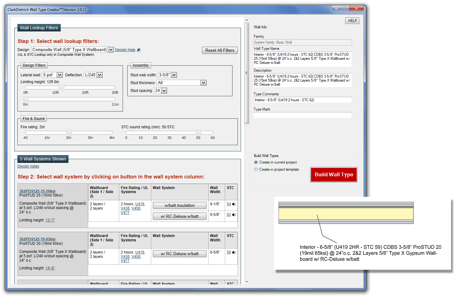 ClarkDietrich Wall Type Creator Revit® Add-In screenshot: